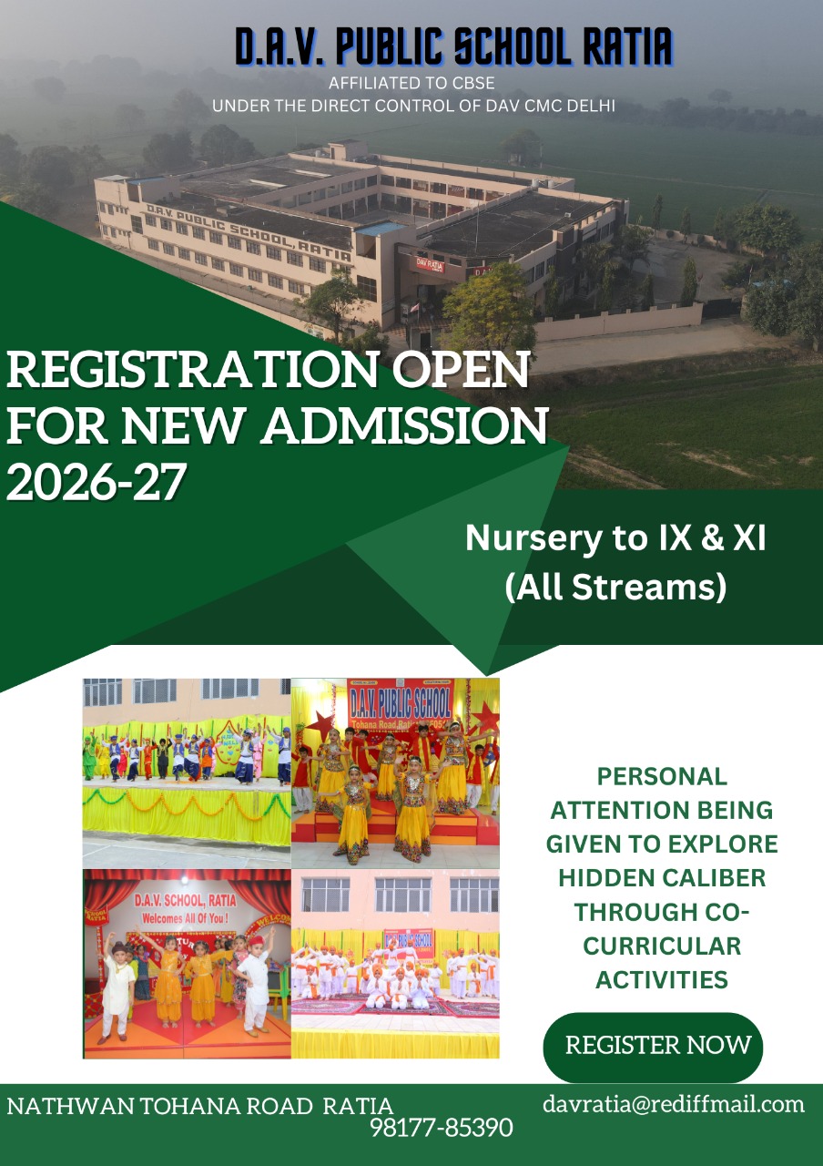 D.A.V. PUBLIC SCHOOL, RATIA FATEHABAD 125051 Contact No.: 98177-85390 E-mail: davratia@rediffmail.com